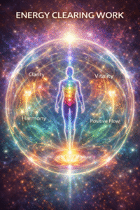 Energy clearing restores the natural integrity of the energetic field. It involves identifying disturbances, removing what does not belong, and allowing the field to return to its original strength.