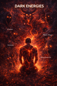 Dark energies are simply dense, low-frequency energetic imprints. They may originate from emotional trauma, environmental exposure, unresolved events, or external energetic interference.